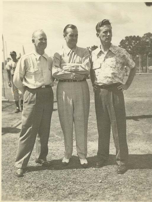 Barber_scully_desmond Happy news today with the announcement of Vin Scully signing a two-year contract extension through the 2008 season. Scully is the most popular personality in Los Angeles franchise history, but his career started with the Brooklyn organization after he graduated from Fordham University. Needing a No. 3 announcer after Ernie Harwell joined the New York Giants, Red Barber recommended the New York native to Dodger President Branch Rickey after the 1949 season. During his first Spring Training in Vero Beach in 1950, Scully posed for this picture with Barber and Connie Desmond (center). By the time Barber left the Dodgers after the 1953 season, the baton had been passed from one Hall of Famer to another.